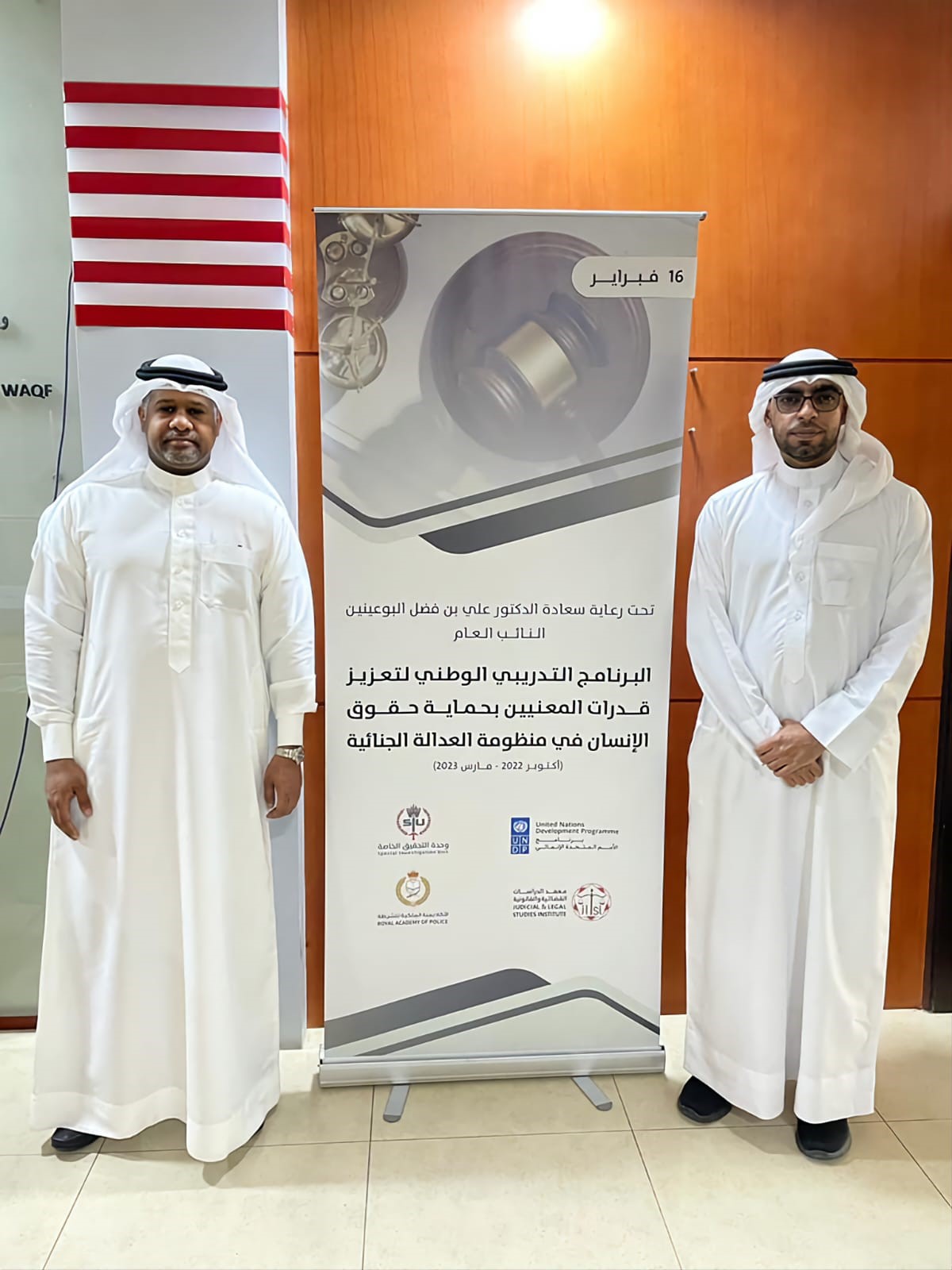 شارك مكتب المفتش العام في الفعالية السادسة من البرنامج التدريبي الوطني لتعزيز قدرات المعنيين بحماية حقوق الإنسان في منظومة العدالة الجنائية، التي انعقدت في تاريخ 16 فبراير 2023، والمنظم من قبل وحدة التحقيق الخاصة بالنيابة العامة، بالتعاون مع برنامج الأمم المتحدة الإنمائي، والأكاديمية الملكية للشرطة، ومعهد الدراسات القضائية و القانونية.